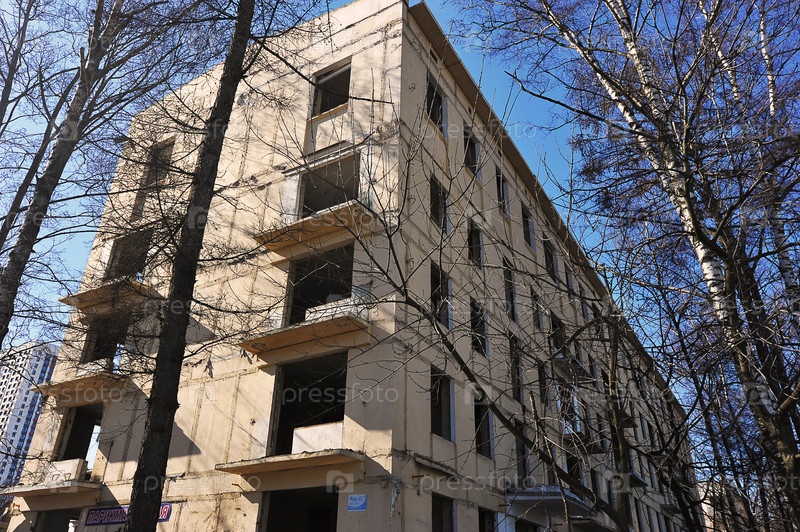 Руины дома - снос старых домов по программе реновации в северном Измайлово в Москве