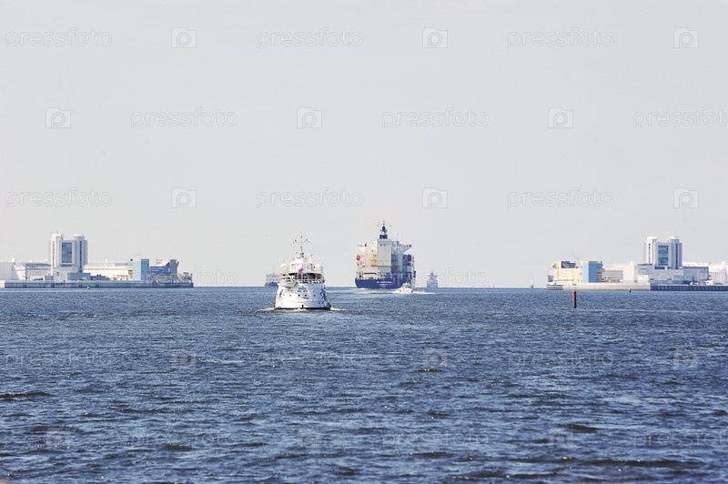 Проход судов через плотину по главному фарватеру в Финском заливе под Кронштадтом