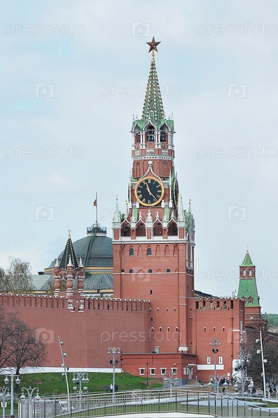 Вид на Кремлевскую стену и Спасскую башню Кремля в Москве