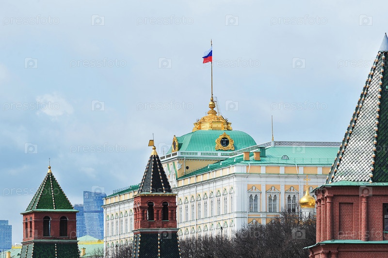 Вид на флаг России в Большом Кремлевском дворце в Москве