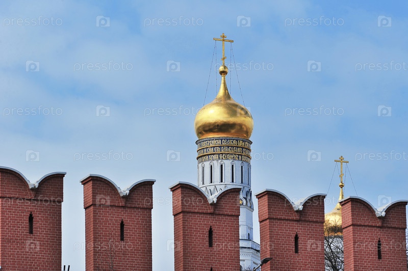 Вид на собор и кремлевскую стену в Москве