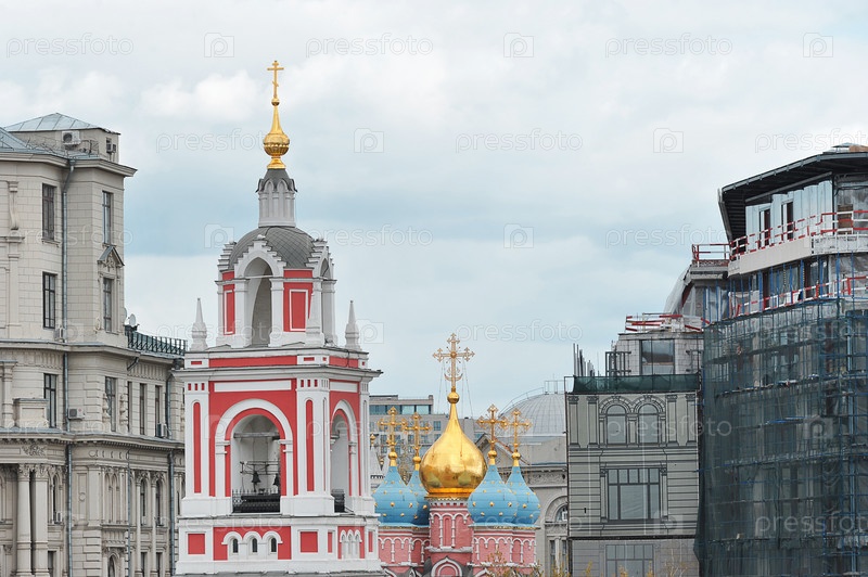 Вид на купола Георгиевской церкви на улице Варварке в Москве