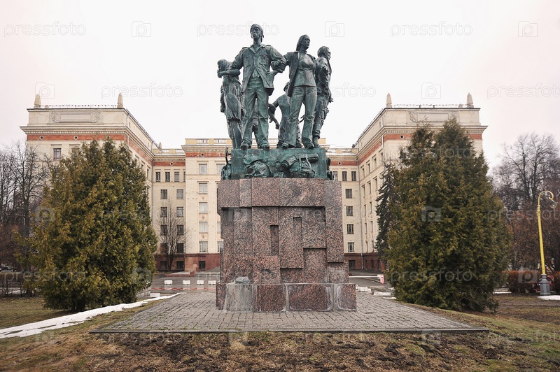 Памятник студенческим стройотрядам возле здания МГУ в Москве