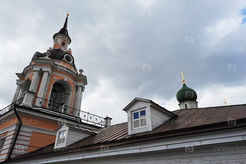 Вид на колокольню на улице Варварке в центре Москвы