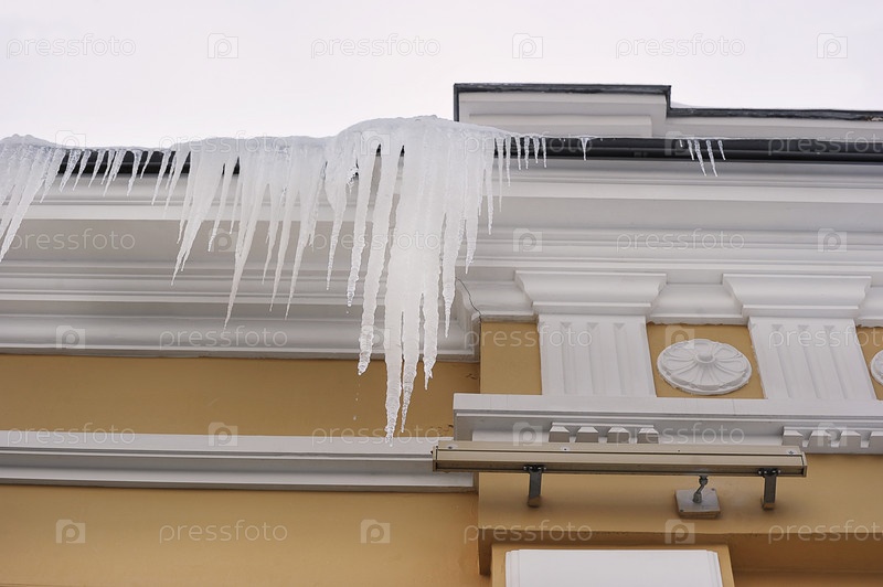 Сосульки висят на краю крыши