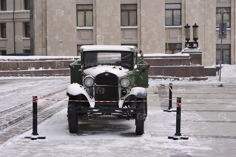 Легендарный полуприцеп Великой Отечественной войны возле здания МИД на Смоленской площади в Москве