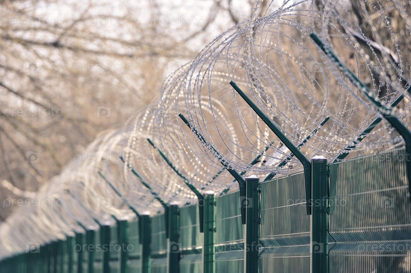 Металлический забор с колючей проволокой