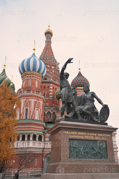Вид на памятник Минину и Пожарскому на Красной площади в Москве