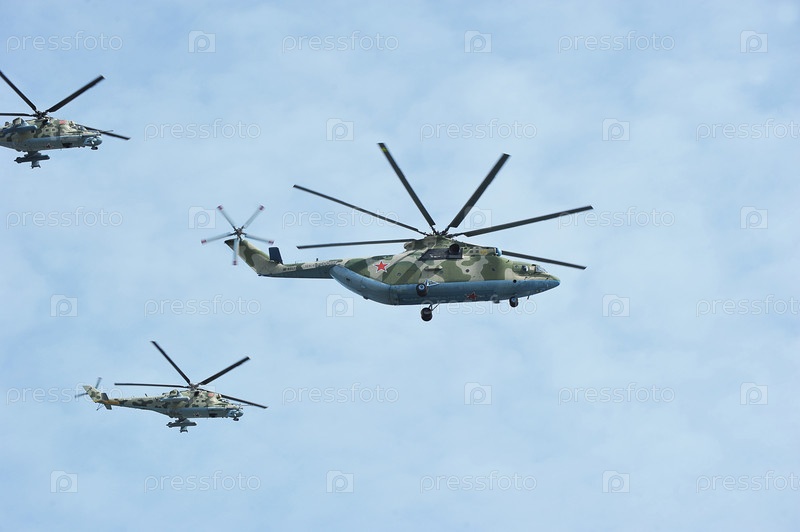 Вид на летающие самолеты на параде победы