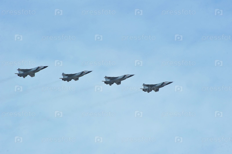 Вид на летающие самолеты на параде победы