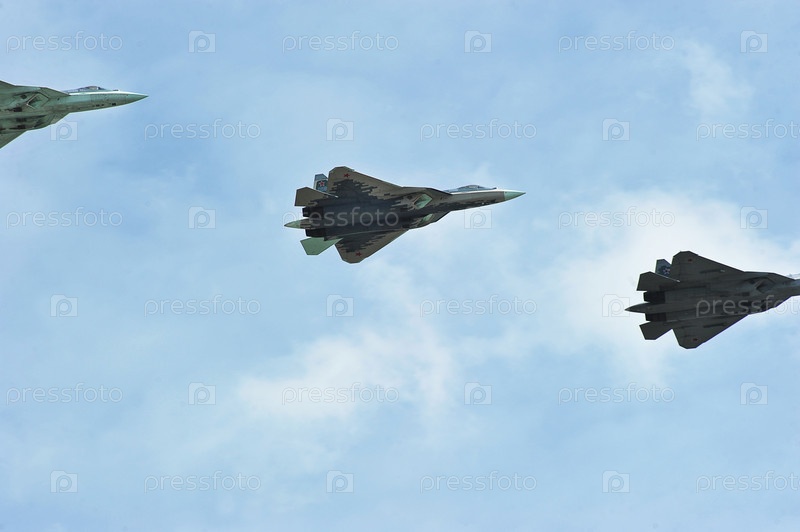 Вид на летающие самолеты на параде победы