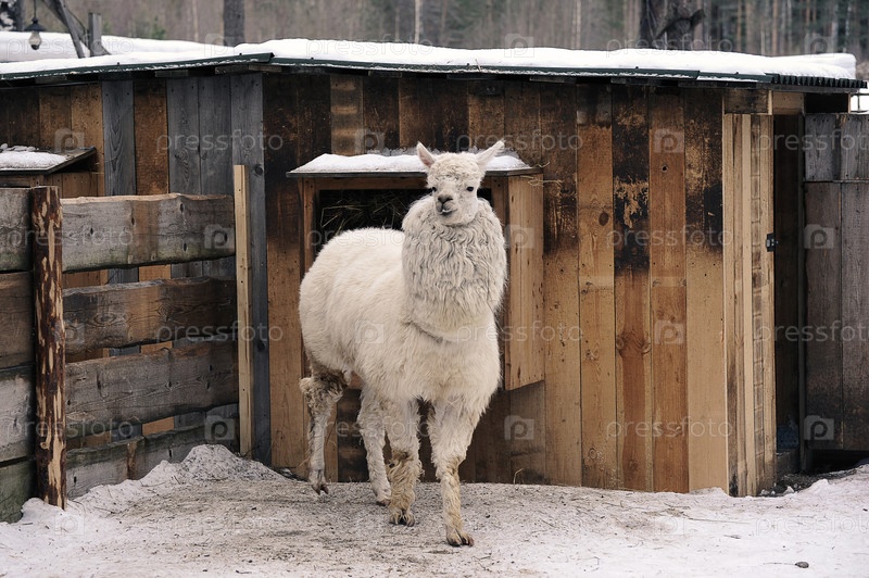 Белая лама в деревянном загоне