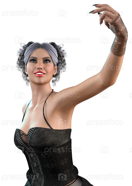 3D готическая девушка в черном платье с рубахами