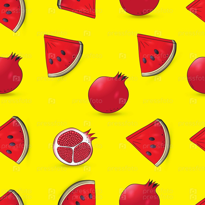 Бесшовный узор с гранатами и фруктами арбуза