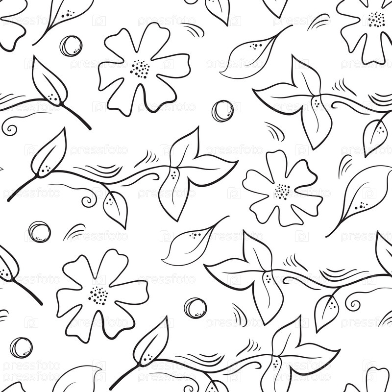 Бесшовный ботанический узор с цветами, ягодами и листьями
