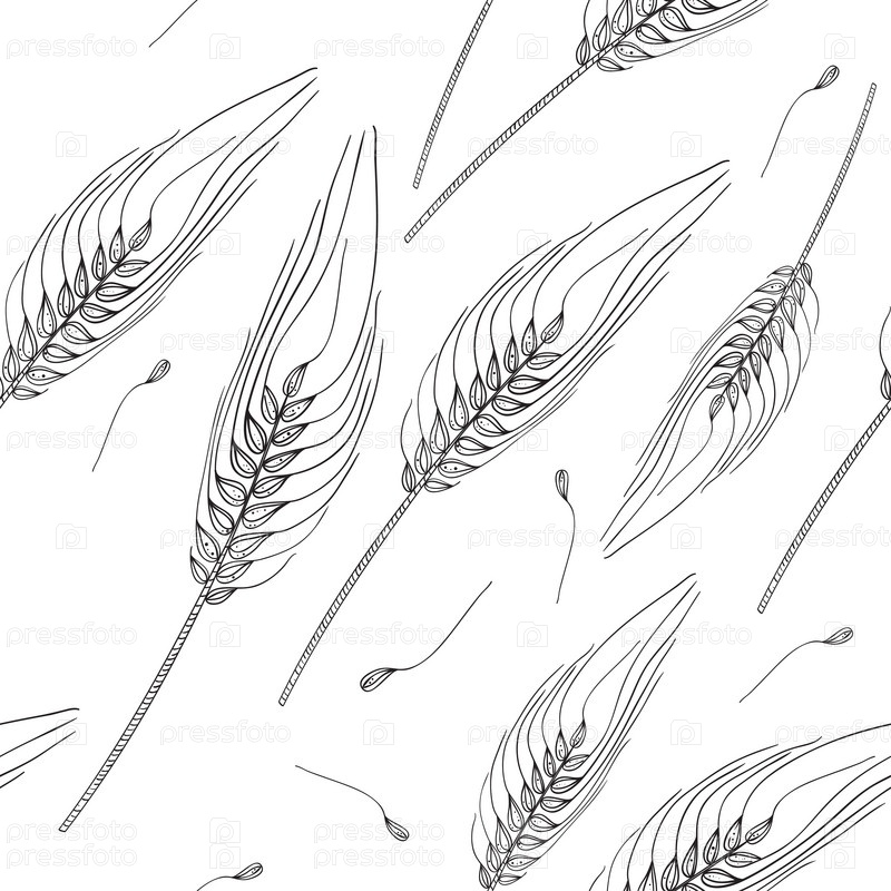 Рисованные колосья пшеницы - бесшовный фон