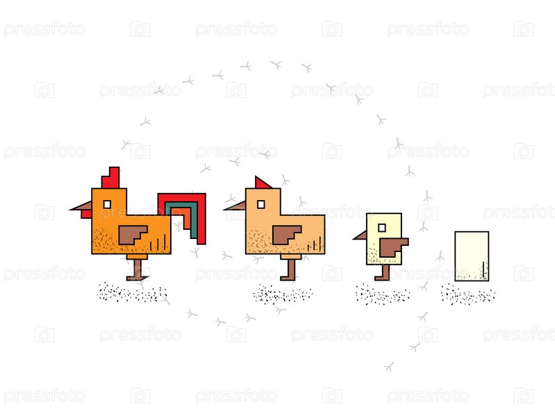 Куриная семья - петух, курица, курица и яйцо - векторная иллюстрация куба