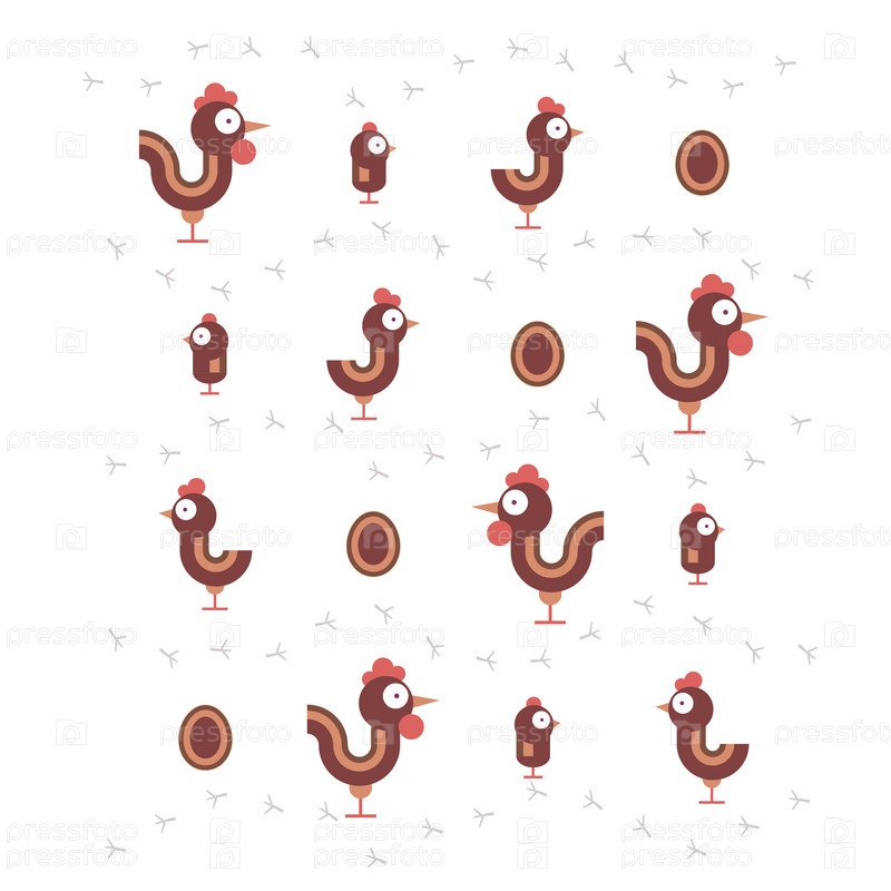 Куриная семья - петух, курица, курица и яйцо со следами