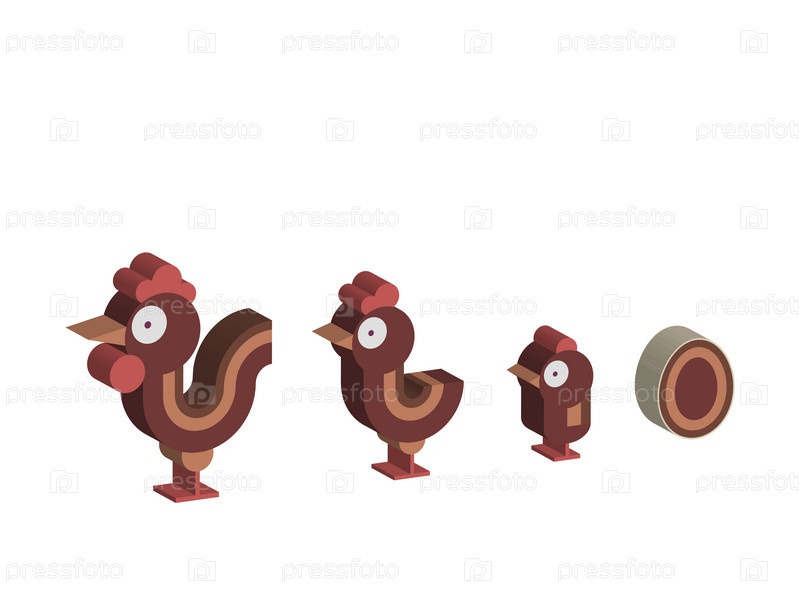 Куриная семья - петух, курица, курица и яйцо - векторная 3d иллюстрация