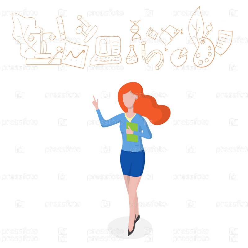 Милая девушка с рыжими волосами выбирает, какую профессию выбрать