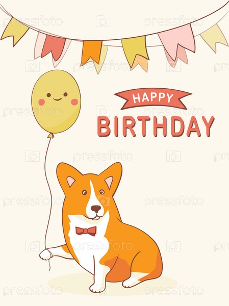 Открытка с днем рождения с персонажем мультфильма Вельш-корги