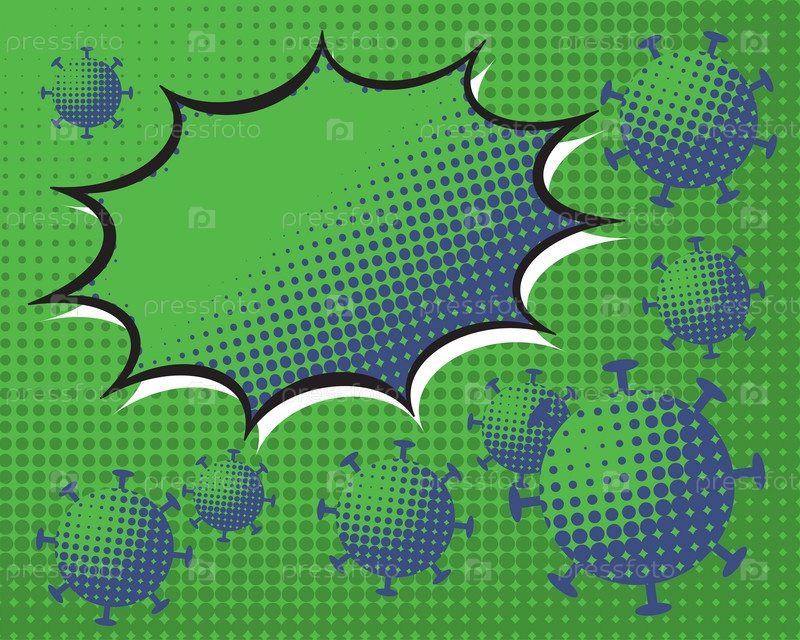 Фон с пузырьками в стиле поп-арт с коронавирусом ковид-19
