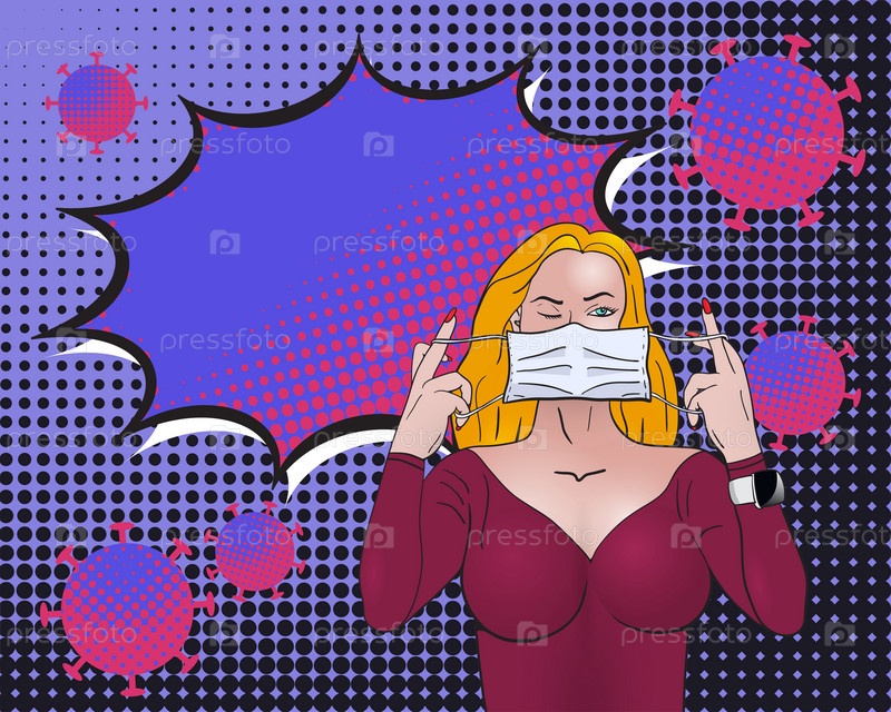 Поп-арт Женщина надевает медицинскую антивирусную маску