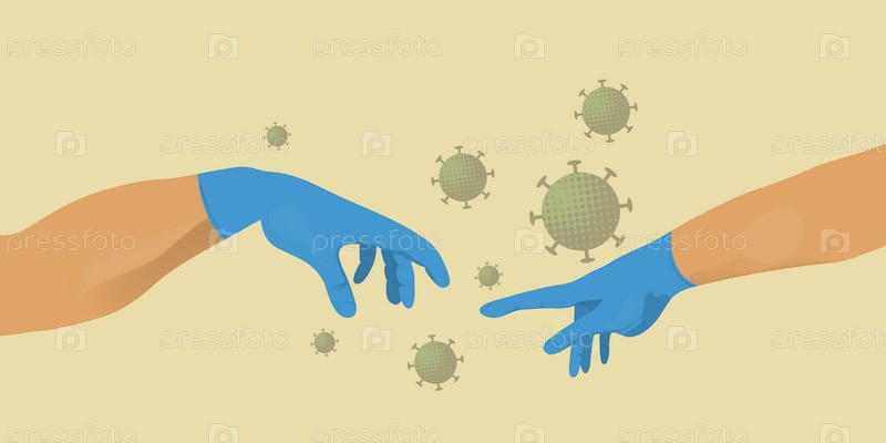 Человеческие руки в медицинских перчатках. Сотворение стиля Адама
