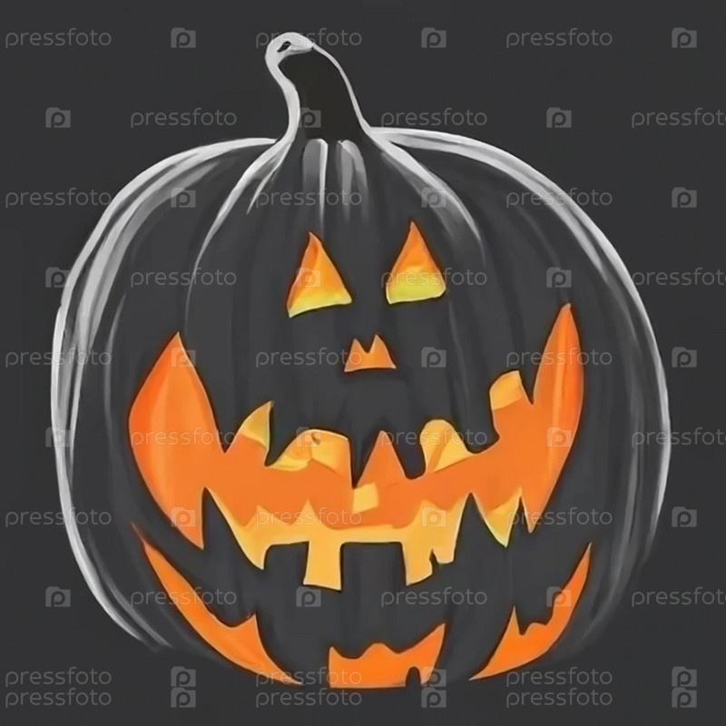 На черном фоне нарисована светящаяся изнутри черная тыква