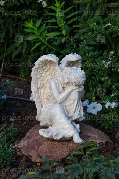 Скульптура ангела в саду Свято-Троицкого Серафимо-Дивеевского монастыря (Россия, Дивеево)