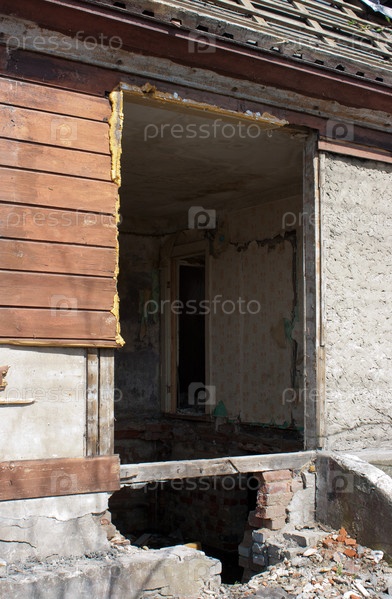 Дверь и комната заброшенного разрушенного дома