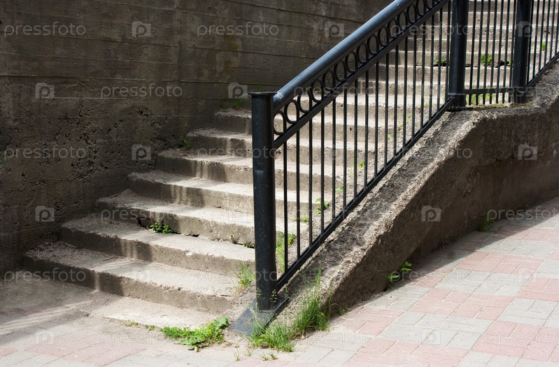 Бетонная лестница с металлическими перилами