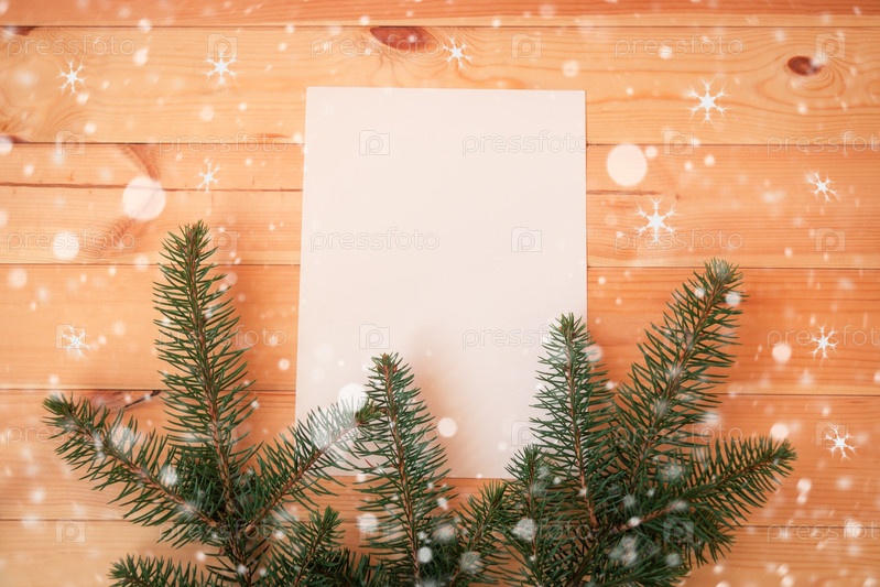 Пустая карточка для текста и еловых веток. Плоская планировка, вид сверху