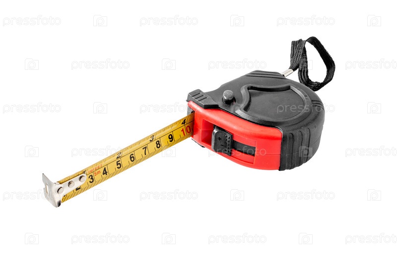 Черная строительная лента, инструмент для измерения длины крупным планом. Отдельный на белом фоне
