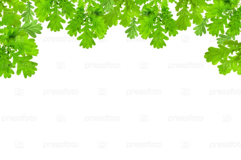 Рамка из множества зеленых дубовых листьев с копировальным пространством. Отдельный на белом фоне