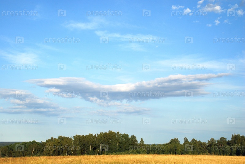 Вид с высокого холма на поле и лес