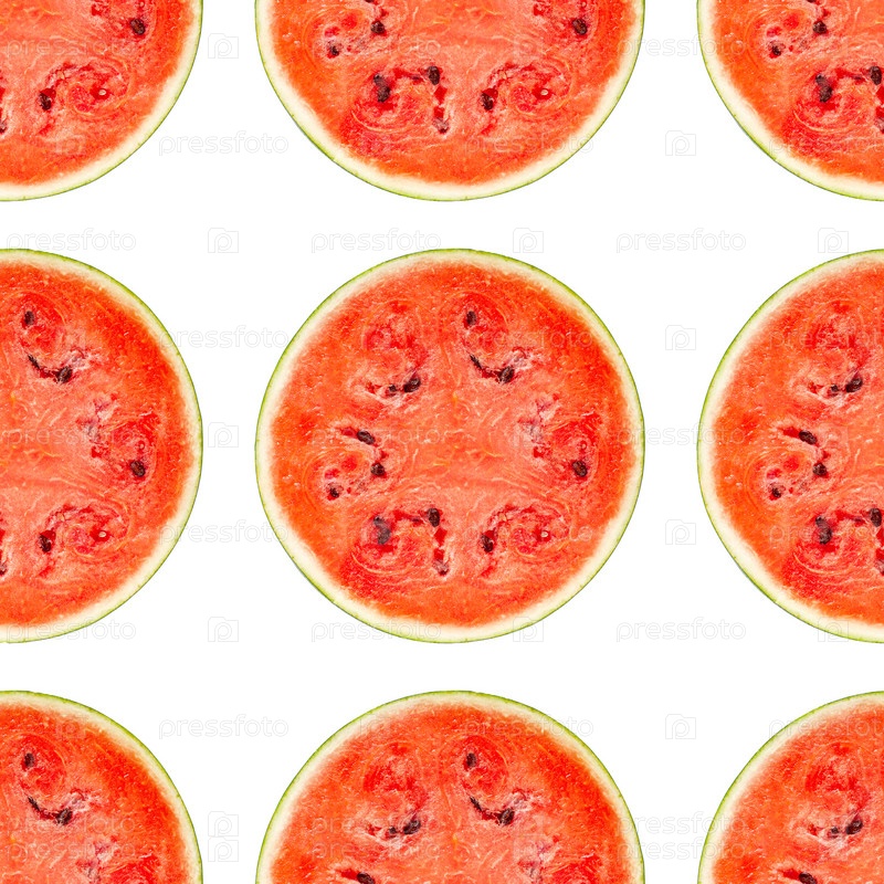 Нарезанный арбуз бесшовный узор. Изолированные на белом фоне. Вид сверху. Заготовка для дизайна