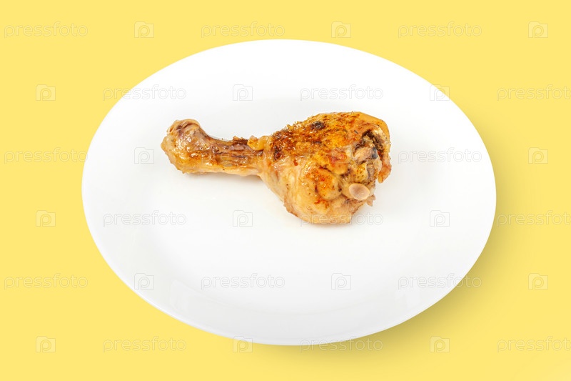 Запеченная куриная ножка с хрустящей корочкой на белой тарелке крупным планом