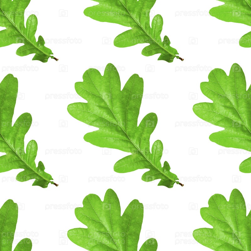Бесшовный узор из повторяющихся листьев обыкновенного дуба на белом фоне