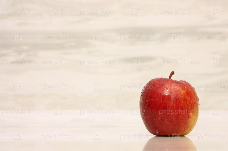 Одно спелое красное яблоко на бежевом фоне в теплых тонах
