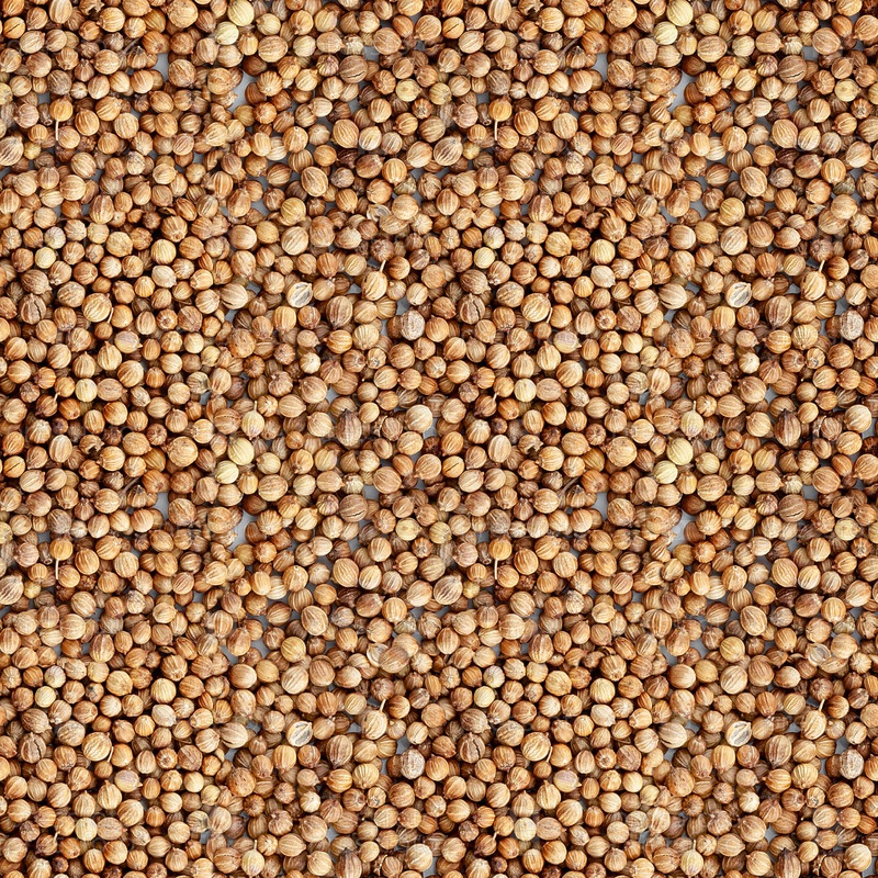 Бесшовный узор из сушеных семян кориандра. Крупный план. Вид сверху