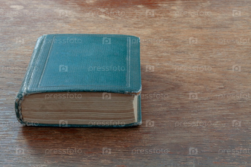 Старая потрепанная книга лежит на старом потрепанном деревянном столе