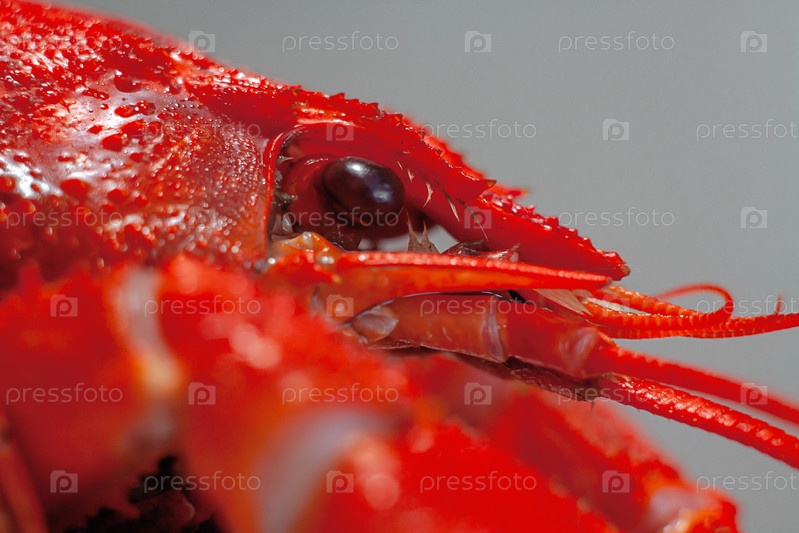 Голова вареного красного рака крупным планом. Макро. Селективный фокус