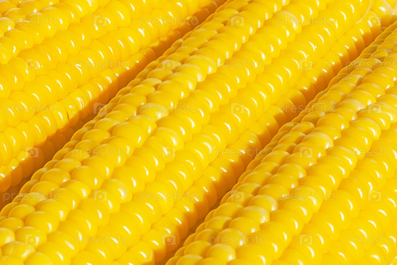 Початок приготовленной кукурузы хрустящий сочный крупный план и лучи яркого солнца