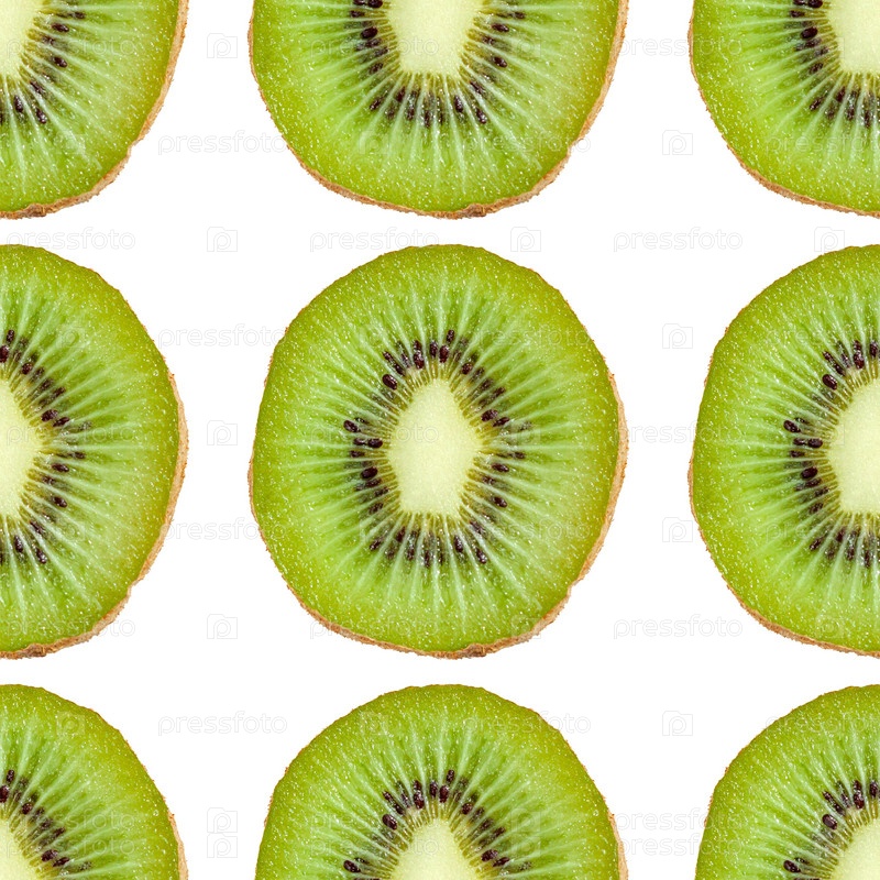 Бесшовный узор из ломтиков свежего сочного киви. Изолированные на белом фоне