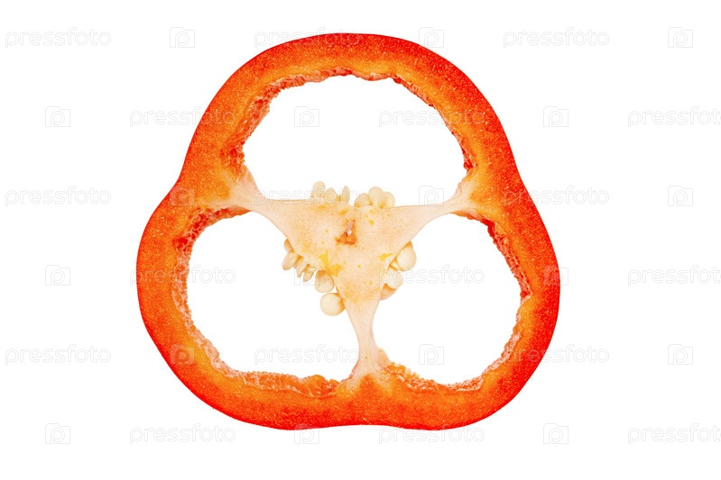 Нарезанный ломтик красного сладкого перца крупным планом на белом фоне