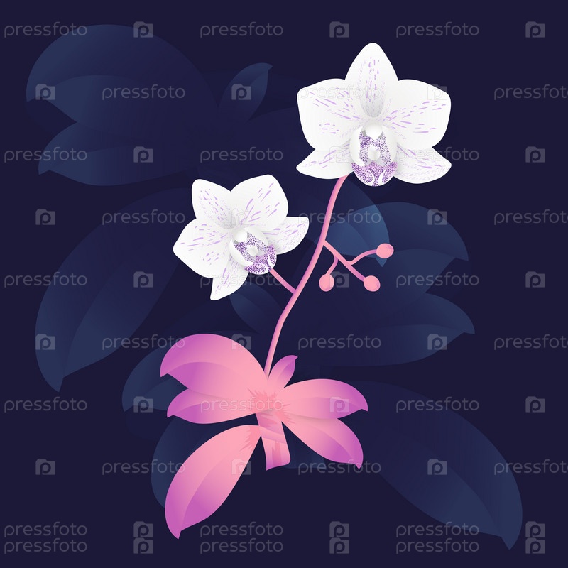 Векторная ветвь орхидеи, нарисованная вручную цветочная иллюстрация
