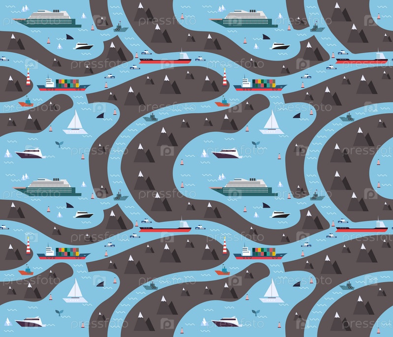 Детский игровой коврик с кораблем, парусной лодкой, яхтой, подводной лодкой в океане и море