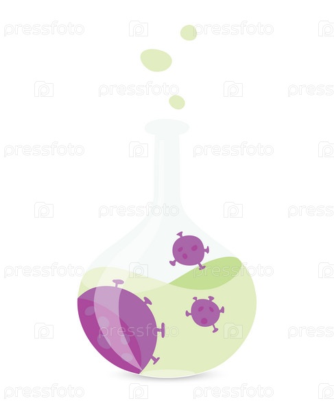 Стеклянная колба с зеленым зельем и коронавирусом