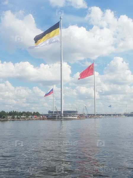 Флаги России, Российской Империи и СССР у парка 300-летия Санкт-Петербурга
